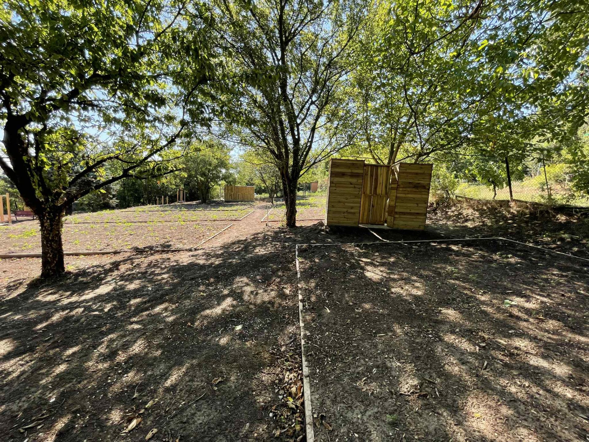 Májusban megindulhatott a kivitelezés. A művelési terület földszinti és magaságyásokkal, kültéri vízcsapokkal, új kerítéssel, komposztálási zónával és szerszámtárolókkal, kiszolgáló szaniter- és öltözőépülettel lett felszerelve, illetve a felszíni esővízgyűjtőedények mellé 35 m3 víztároló tartályt telepítettünk.