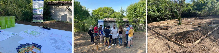 Márciusban a Magyar Talajtani Társaság „Talaj a talpad alatt” elnevezésű rendezvénye keretében nyitott talajszelvény segítségével, a környező lakossággal és diákokkal együtt vizsgáltuk meg a farm talaját. Szakértőik is megerősítették a korábbi laborvizsgálatok eredményét, a terület mezőgazdasági termesztésre alkalmas. A természetvédelmi szempontok érvényesülését a Magyar Madártani és Természetvédelmi Egyesület által végzett zoológiai felmérés támasztotta alá: a szakemberek számos énekesmadár- és rovarfajt azonosítottak, és javasolták néhány holt fa megőrzését az élőhelyek fenntartása érdekében. Ugyanebben az időszakban meteorológiai mérőállomást is elhelyeztünk a farmon, amely a hőmérséklet-, csapadék- és páratartalom-adatokat egy speciális rendszeren keresztül gyűjti. Az adatokat mesterséges intelligencia által támogatott minőségellenőrzési folyamat elemzi, amely a csapadékvíz-gazdálkodás és az oktatási programok tervezését egyaránt segíti. A farm ökológiai alapon nyugvó irányaira tekintettel a Pallagvölgyi Biokertet is felkerestük, hogy a permakultúrás, vegyszermentes gazdálkodás gyakorlati megoldásairól, a biodiverzitás megőrzéséről és a közösségi bevonás mikéntjéről, jó gyakorlatáról is újabb tapasztalatokat szerezzünk.